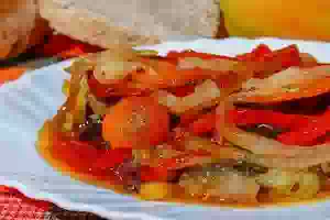 4. Закрыть казан крышкой. Довести до кипения, после чего уменьшить огонь и томить под крышкой примерно 40 минут. Готовые овощи разложить по тарелкам и подать с мягким белым хлебом.