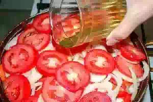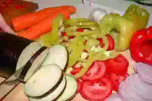 1. Все овощи нарезать кольцами приблизительно одной толщины.