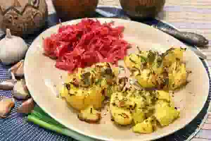 9. Мятый картофель, запеченный в духовке с соусом мохо, готов. Подавать горячим как основное блюдо или гарнир к рыбе или мясу.