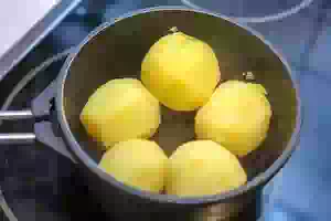 1. Картофель очистить, положить в подсоленный кипяток и варить до полуготовности около 20 минут. Слить с картофеля воду, прикрыть крышкой, чтобы вареные клубни медленнее остывали.