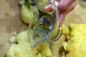 1. Картофель очистить, положить в подсоленный кипяток и варить до полуготовности около 20 минут. Слить с картофеля воду, прикрыть крышкой, чтобы вареные клубни медленнее остывали.