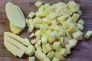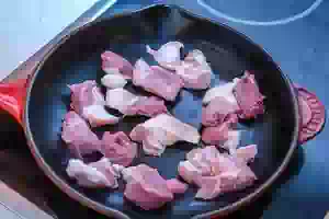3. Мясо нарезать небольшими кубиками (оптимально 2х2 см).
