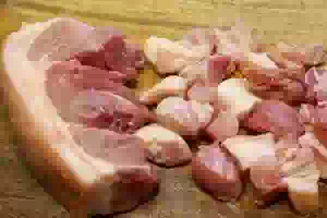 3. Мясо нарезать небольшими кубиками (оптимально 2х2 см).