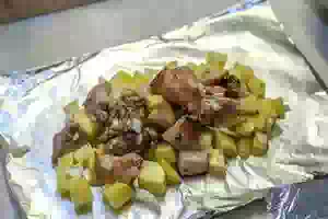 Как приготовить "Свинина с картофелем в лодочках из фольги"