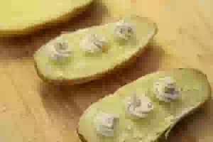 3. На каждую половинку картофеля положить по 2-3 кусочка сырного масла.