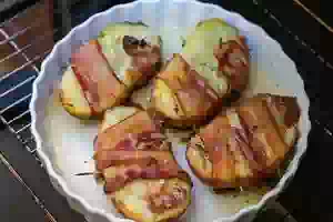 Картофель с сырным маслом, завернутый в бекон