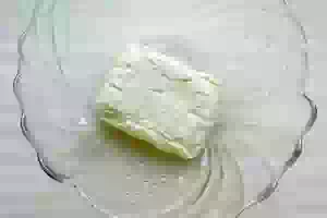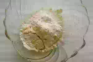 1. Для теста свежий сухой творог размять в миске подходящего размера.