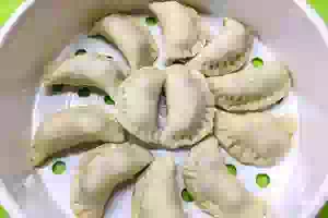 Защипываем каждый кружок так, чтобы ягодная начинка осталась внутри вареника. Форму мультиварки смазываем маслом и выкладываем готовые вареники на небольшом расстоянии. Наливаем в чашку мультиварки 1 литр воды и устанавливаем форму, закрываем крышкой, включаем нужный режим и готовим 6-8 минут.
