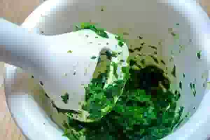 1. Прежде чем определиться с ингредиентами, нужно узнать, сколько сока получится из небольшого пучка шпината. Для этого измельчить шпинат ножом,