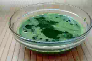 3. кашицу отжать марлей. Получился зеленый сок - натуральный краситель. Измерить его количество.