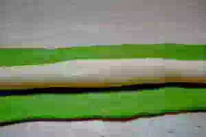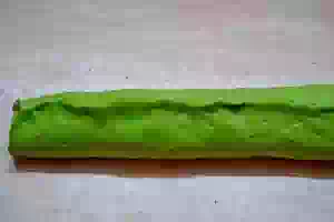 10. Зеленое тесто слегка раскатать, а белое уложить посередине.