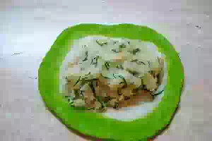 15. Положить в центр лепешки начинку.