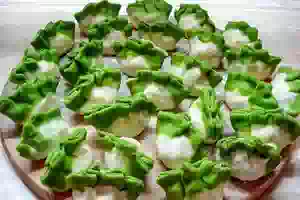 Двухцветные вареники со шпинатом на пару