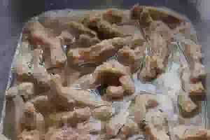 1. Для начала соевое мясо залить примерно 300 мл кипятка и оставить на 15 минут.