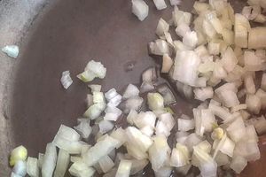 4. Мелко нарезать луковицу. Лук обжарить до полупрозрачного цвета.