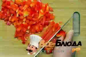 6. Добавить помидоры и перец, жарить еще 5 минут.