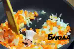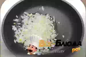 3. На разогретую сковороду добавить растительное масло и выложить лук. Обжарить лук в течение 1 минуты.