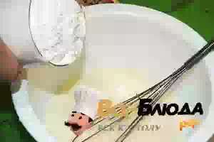 1. В миске взбиваем яйцо с сахаром. Должна получиться густая пена. Добавляем молоко, смешиваем его с яйцом.