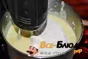 2. В жидкую смесь ввести по одному яйца. В процессе добавления яиц массу нужно продолжать взбивать, чтобы консистенция получилась ровной, без комочков.