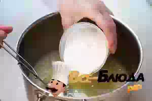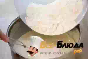 1. В миску просеять пшеничную и ржаную муку. В другой миске подходящего размера венчиком взбить как на омлет яйца, соль и сахар.