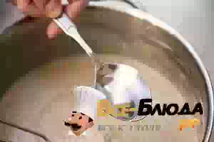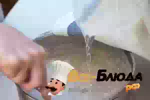4. Продолжая размешивать тесто, влить тонкой струйкой стакан крутого кипятка.