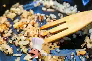 1. Для начинки обжарить на растительном масле мелко нарезанный лук.