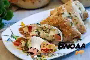 5. В центр каждого блина положить по 1 ст.л. начинки (или чуть больше) и свернуть конвертом. Сразу же подавать блины с начинкой к столу, чтобы они не размякли из-за выделившегося сока огурцов и помидоров. Дополнительно к блинчикам можно подать сметану, майонез или чесночный соус.