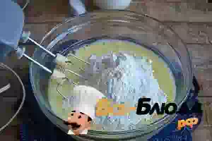 2. Всыпать всю муку и взбить миксером так, чтобы не осталось комков. Добавить оставшееся молоко и посолить.