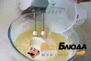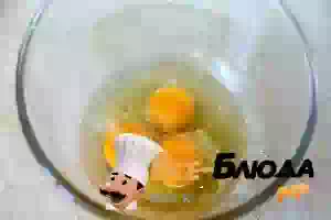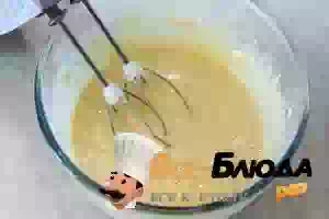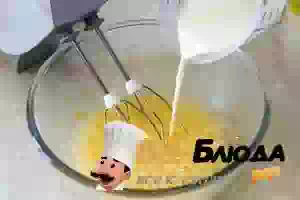 1. Заранее достать все продукты из холодильника, чтобы они прогрелись до комнатной температуры. В миске подходящего размера венчиком или миксером взбить в пену яйца с сахаром и солью.