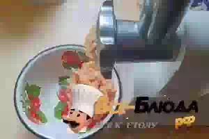 2. Мясо порезать небольшими кубиками и перекрутить в мясорубке с решеткой среднего размера.