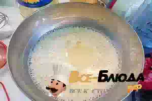 1. В глубокую посуду, подходящее по объему для замеса блинного теста, наливаем молоко и лимонад комнатной температуры.
