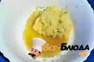 3. Сырой картофель трём на мелкую тёрку. Картофельный сок отделяем и отставляем в сторону.