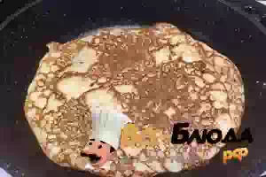 8. Блины выпекать из повторно подошедшего теста на толстостенной раскаленной сковороде, смазанной подсолнечным маслом. Удобно использовать сразу две-три сковороды, и тогда гора с блинами будет расти вверх значительно быстрее.
