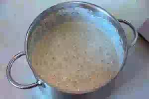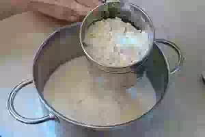 2. Смешать остальное теплое молоко с просеянной мукой.