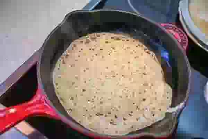 7. Когда тесто для дрожжевых блинов подойдет, больше перемешивать его не надо. Зачерпывать ковшом и выливать на хорошо прогретую, смазанную маслом сковороду. Жарить блины на небольшом огне с двух сторон до красивого румянца. Готовые толстые блины на дрожжах складывать стопкой на тарелку, по желанию смазывая каждый блин небольшим количеством сливочного масла. Подавать к столу сразу, пока блины горячие.