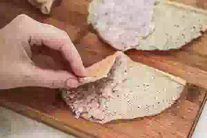 3. Подвернуть край блина, на котором есть начинка, к середине.