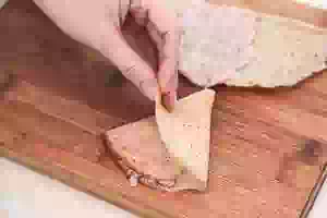 4. Прикрыть его краем блина без начинки. У вас должен получиться треугольник.