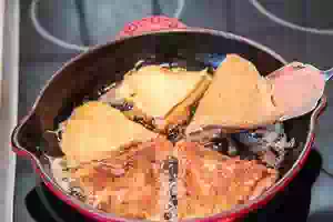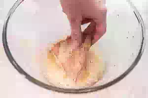 5. Для льезона взбить яйцо с молоком, приправить щепоткой соли. Обмакнуть каждый треугольничек во взбитое яйцо.
