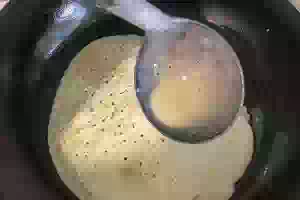 2. Добавить яйцо, соль, сахар. По частям примешать муку, чтобы получилось однородное тесто без комочков. Для этого используйте миксер.