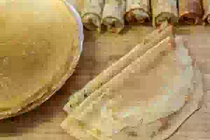 1. Блины подойдут любые. Я пекла тонкие блины на кефире.
