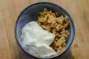3. В небольшой посуде смешать рубленую зелень, грузди и сметану. Грибная начинка для блинов готова.