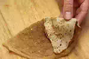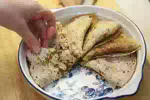 9. Подвернуть угол блина с начинкой, как показано на фото, чтобы получились вот такие треугольнички.