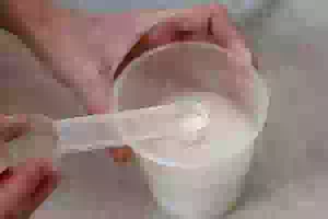 5. Теперь в теплой воде надо размешать соду. Я долила воду в тот же стакан, в котором было молоко.