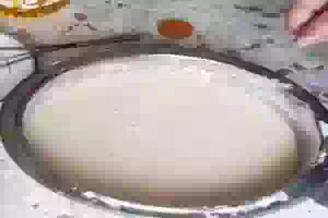 3. Добавить соль, сахар. Постепенно всыпать муку, перемешивая. Тесто должно быть умеренной густоты.