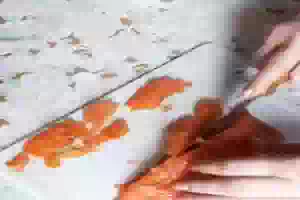 8. Семгу нарезать тоненькими полосками.