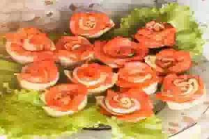 "Розы" из тонких блинов с семгой