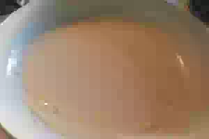 3. Добавить теплую воду (0,5 стакана). Взбить все в однородную массу.