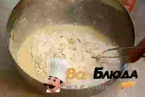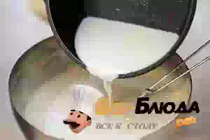 3. и смесь горячего молока с кипятком. Размешивать блинное тесто до однородности.
