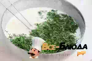 4. Молодую зелень укропа мелко порубить и отправить в миску с тестом.