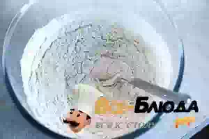 2. В другой миске соединить просеянную муку, обычный и ванильный сахар, соль и молотую корицу. Эту смесь примешать к сметане с содой.